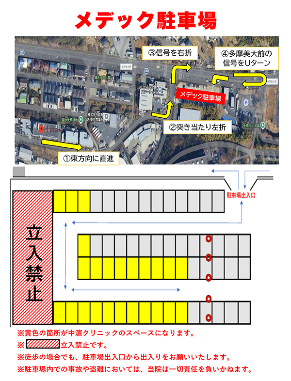 ヨドバシ駐車場オープン以降、『メデック駐車場』に関しましては、クリニック駐車場・ヨドバシ駐車場に駐車することができない際にご利用ください。